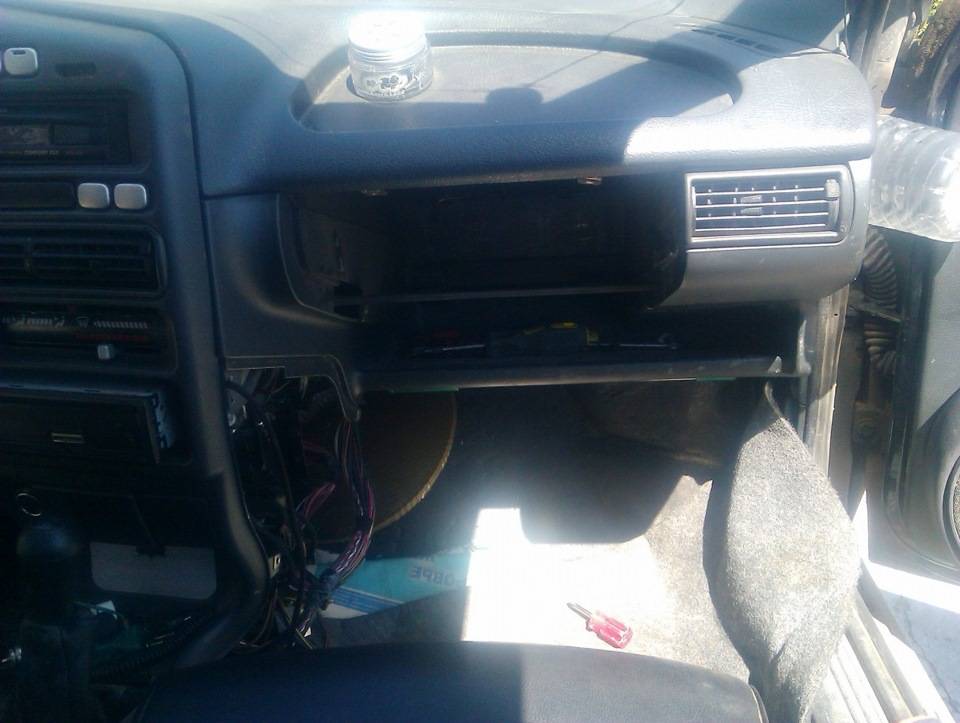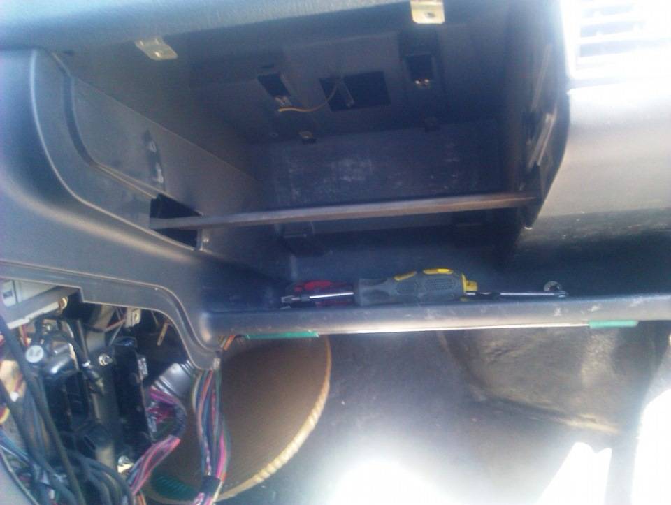 Следующим этапом будет демонтаж вещевого ящика — бардачка. Он крепится на шести саморезах, их нужно выкрутить.
