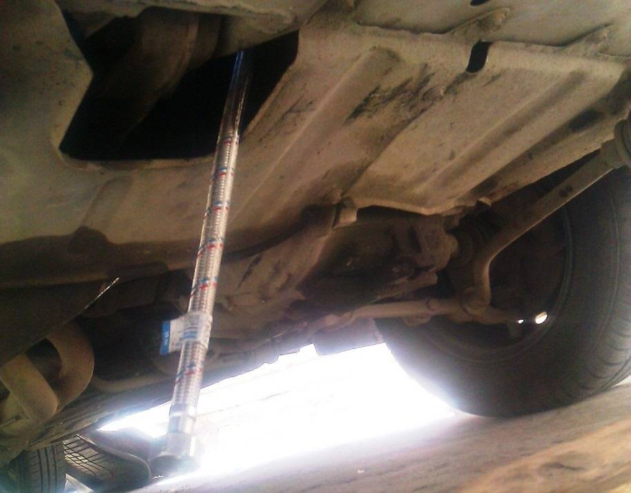 Для выполнения этой работы нужна эстакада или смотровая яма.