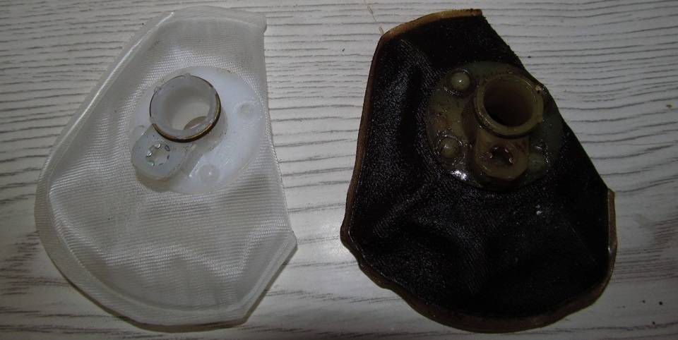 На фото видно, насколько сильно может быть загрязнена сетка топливного насоса.