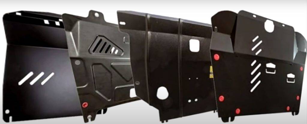 Чаще всего защиту двигателя делают из стали, алюминия или углепластика.